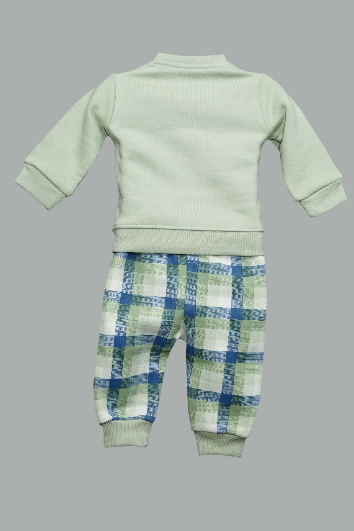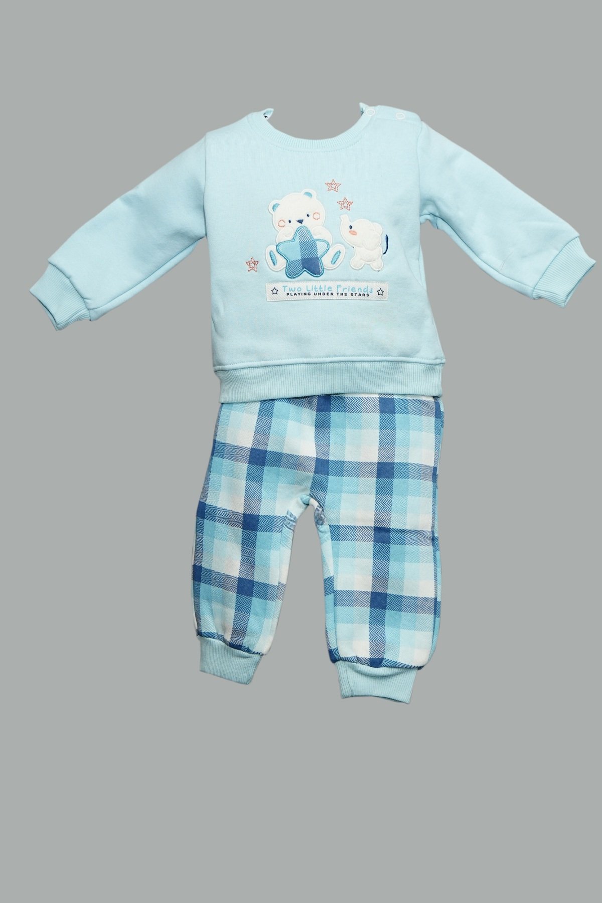 Soft baby-sweatshirt with bear applique and matching plaid joggers—cozy, easy to dress, and perfect for everyday wear.
