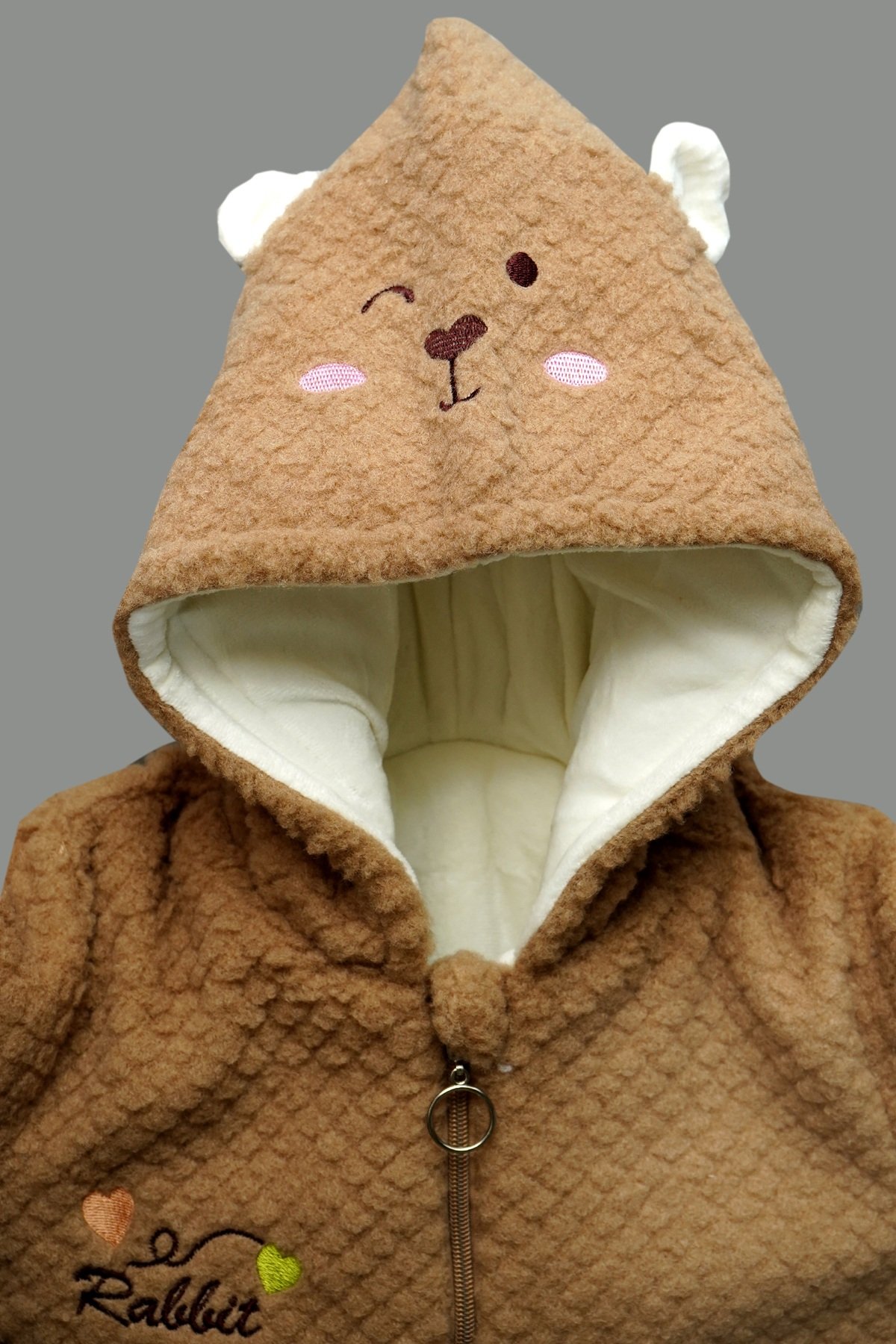 • Adorable hood with bunny ears and embroidered face