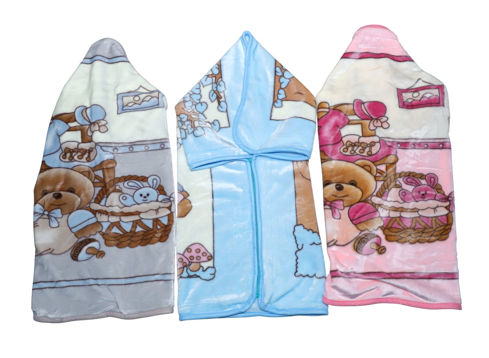 The Cozy Button Wrap is a padded hooded baby wrap with zip-and-button closure, plush inner lining, and charming teddy-and-basket prints. Designed for easy on/off with a central zip and snap/button placket, it offers full coverage for stroller rides, naps, and quick outings. Quilted panels and a supportive hood provide gentle insulation while remaining lightweight and packable.