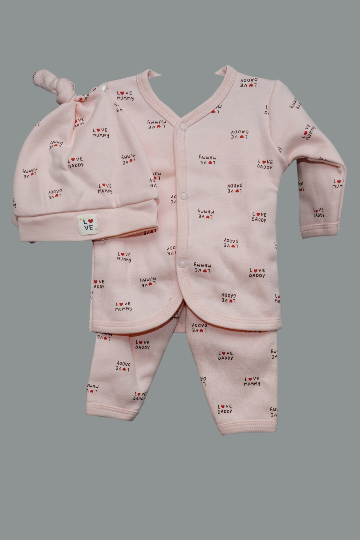 - Matching knot hat keeps head warm and adds a sweet finish