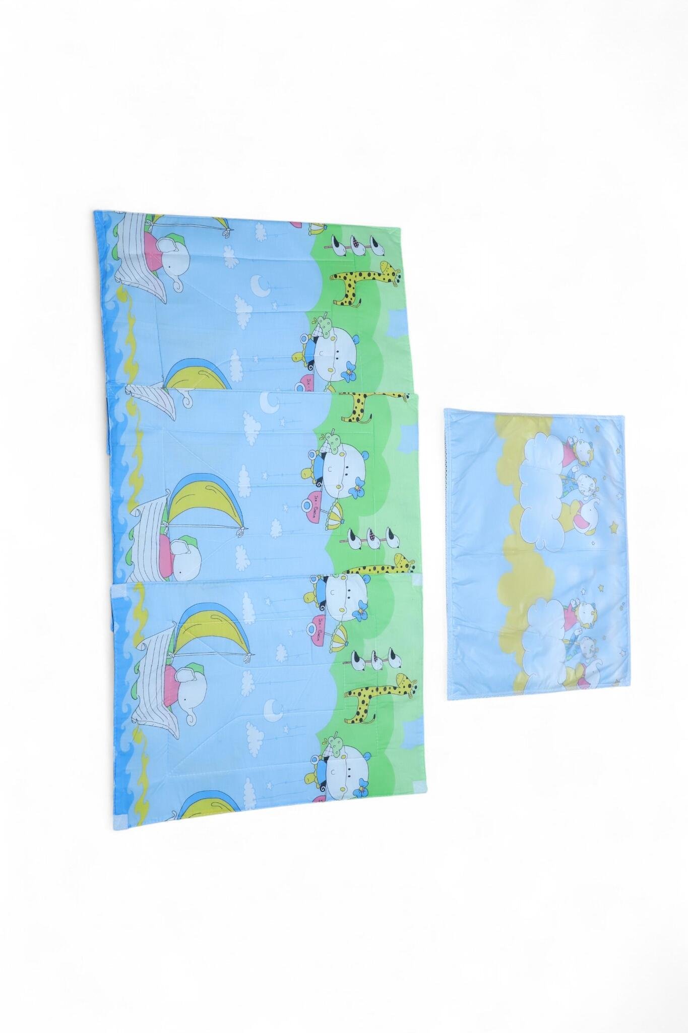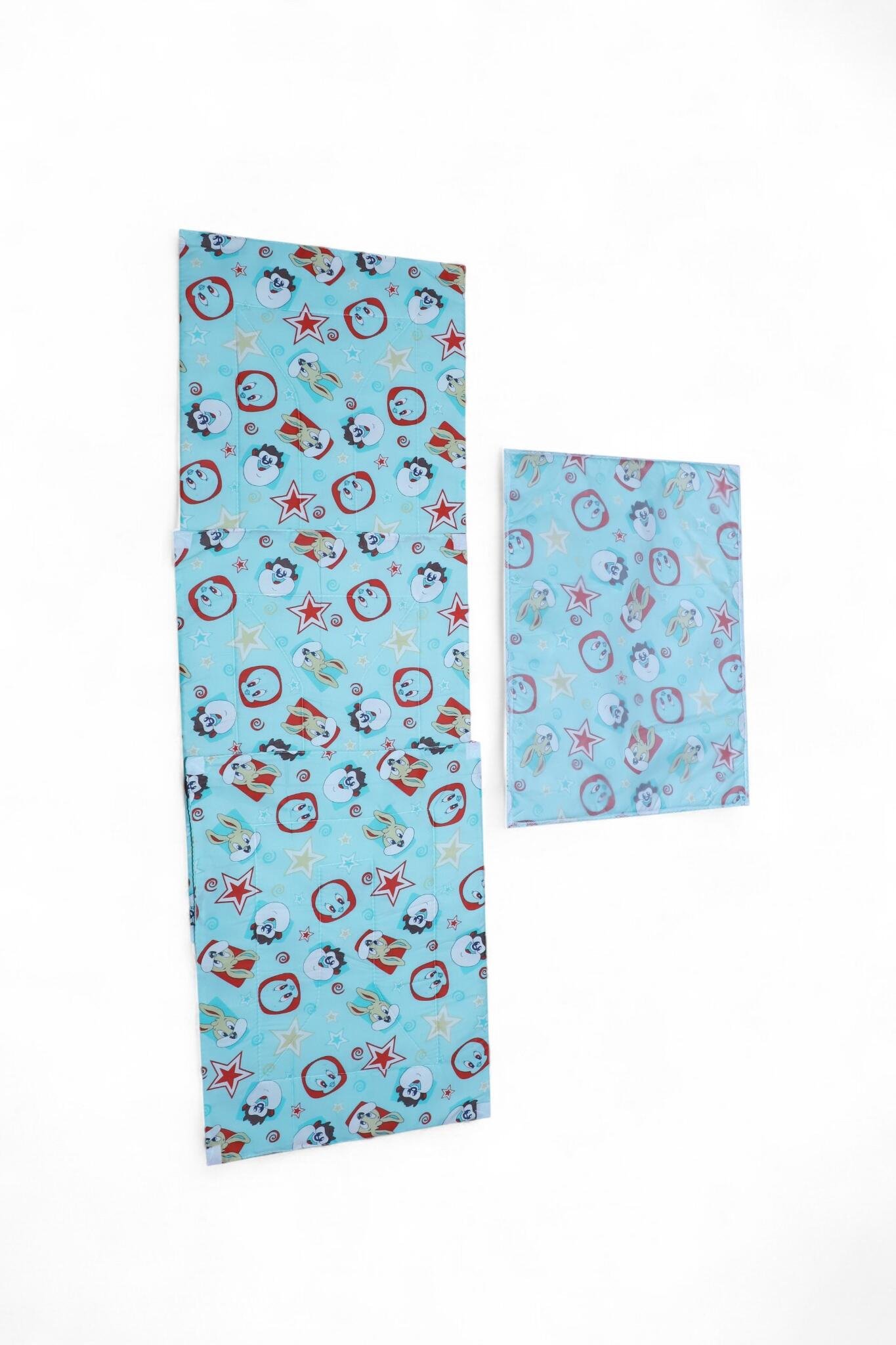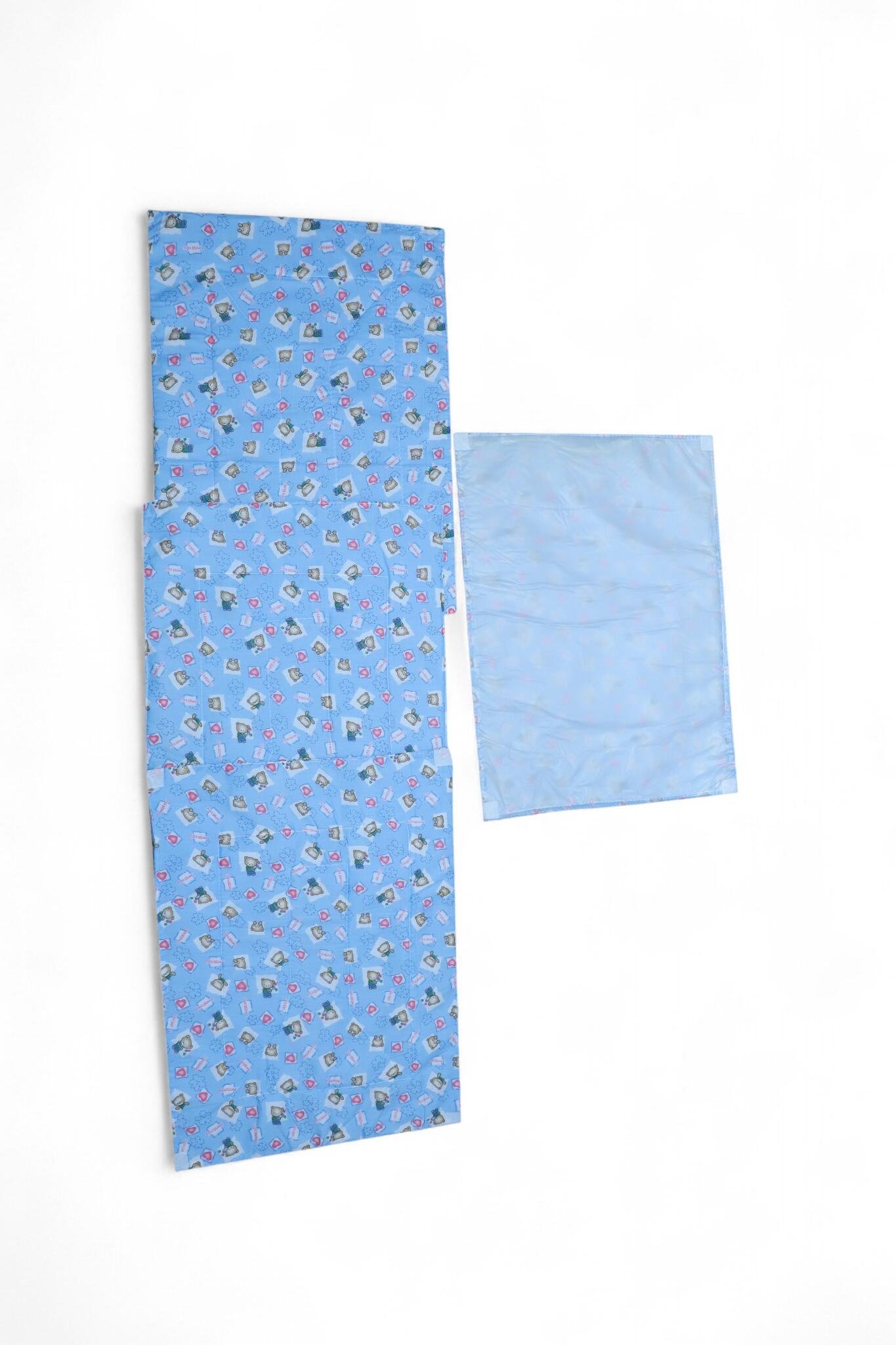 Practical 3‑piece diaper changing sheet set with an extra detachable waterproof sheet. Includes one quilted changing mat, two padded side panels (foldable for stroller/crib use), and a removable waterproof topper for quick cleanups. Printed, wipeable outer with soft padded fill provides a cushioned, hygienic surface for diaper changes at home or on the go.