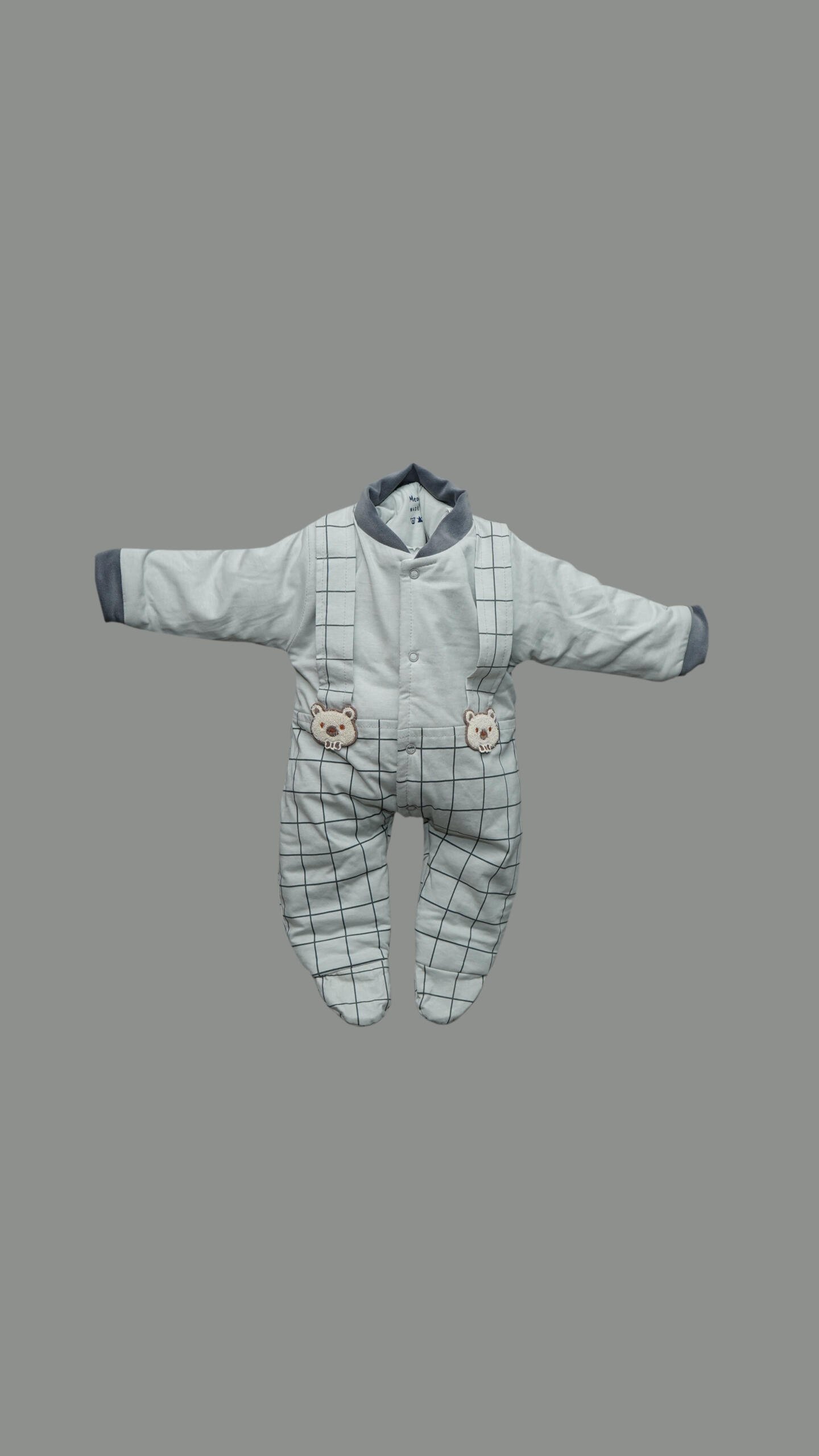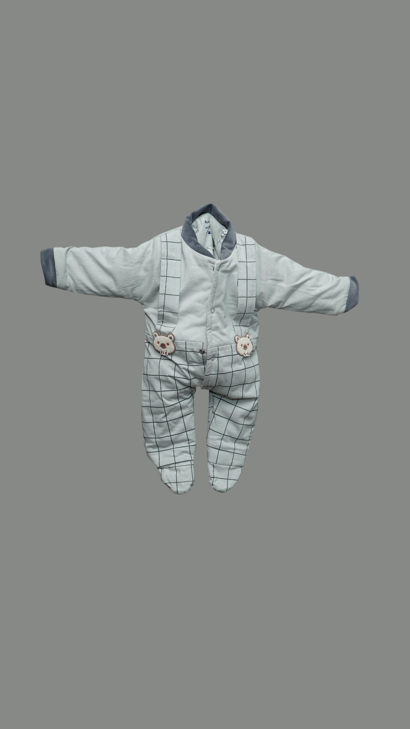 Keep baby cozy in this Grey Grid Quilted Footed Snowsuit. This one-piece features a soft quilted upper with a lined hood, long sleeves with contrasting cuffs, and a grid-patterned lower with built-in footies. Insulated yet lightweight, the snowsuit has a roomy cut for layering and easy movement, plus reinforced stitching at the seat and knees for durability. Neutral tones and a modern grid print make it a versatile choice for outings and chilly naps.
