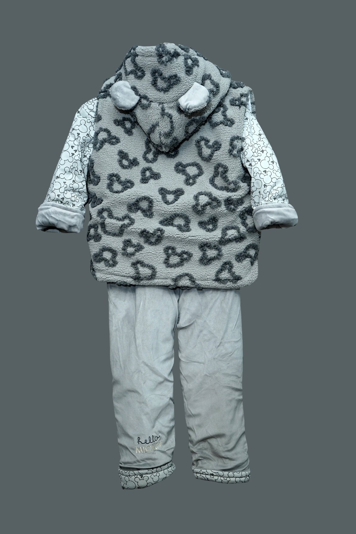 Grey Mickey Mouse Fluffy Pajama Set for Kids