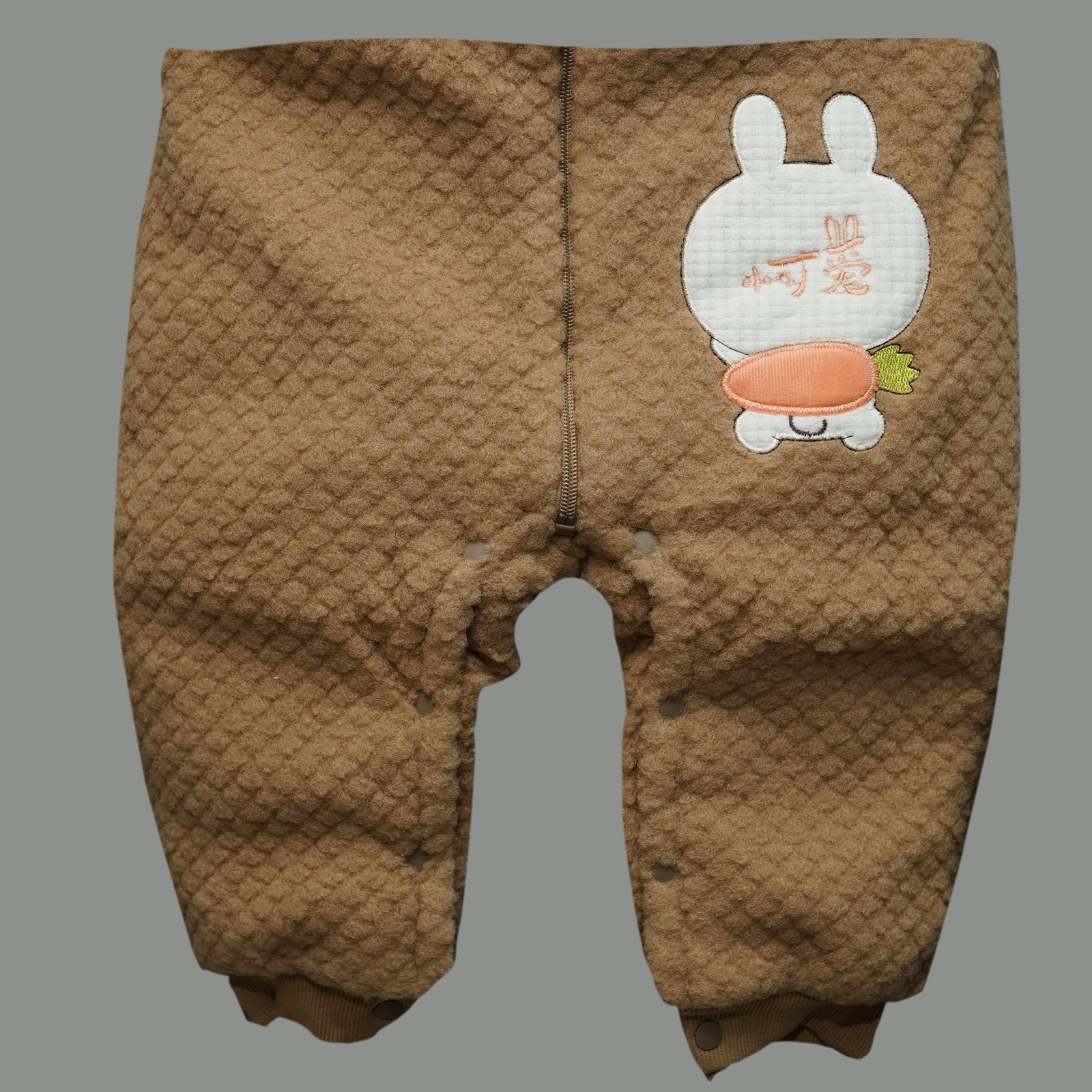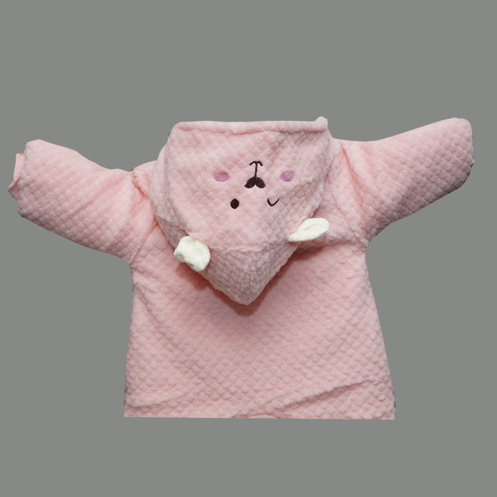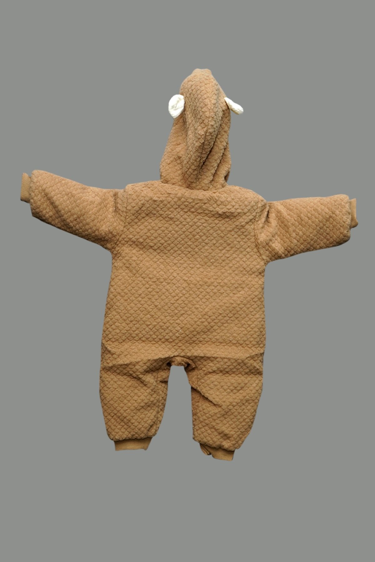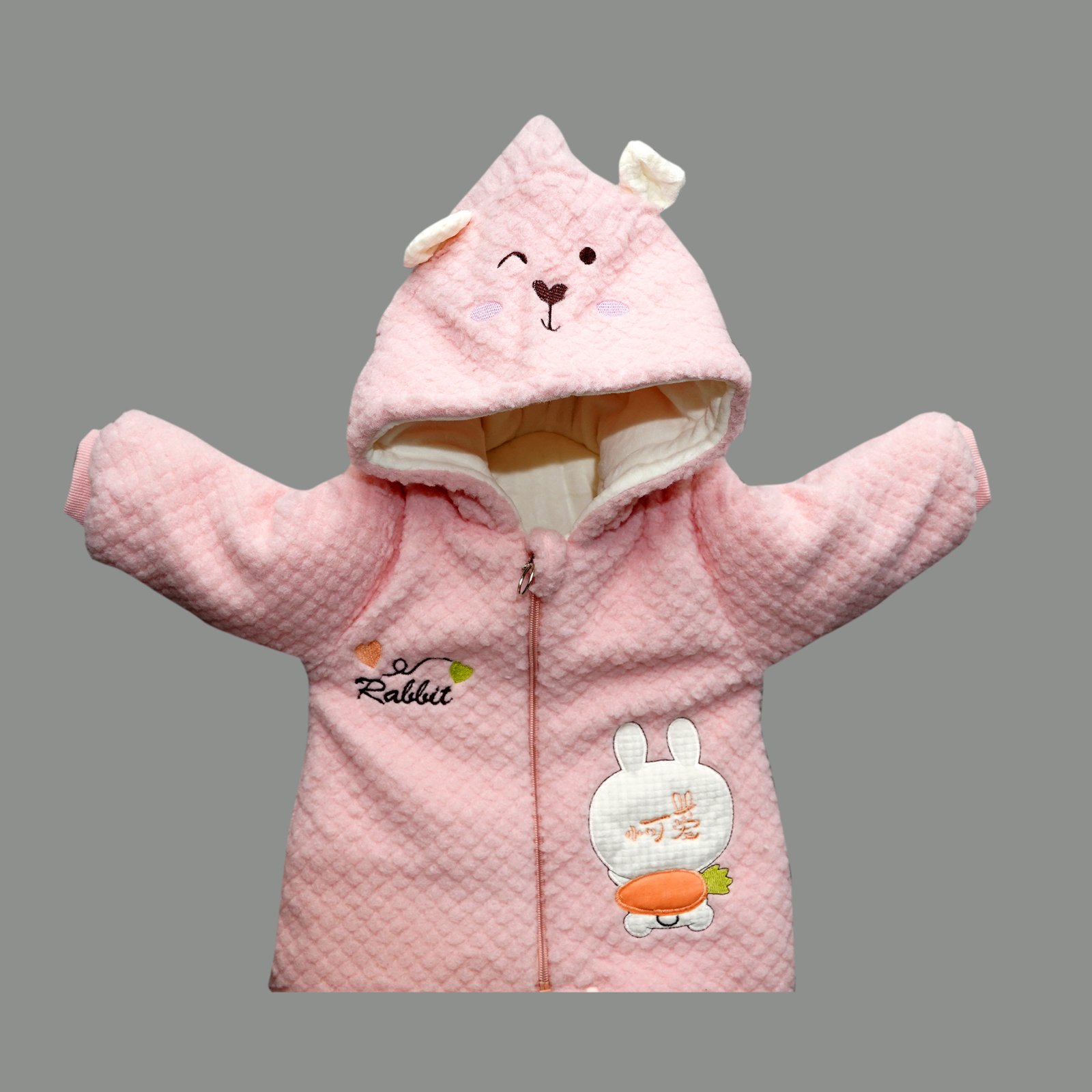 Keep your little one snug and adorable with our Light Blue Textured Baby Jumpsuit, crafted for warmth and everyday comfort. Made from soft quilted fabric, it features a playful bear-face hood and charming bunny applique with carrot embroidery. The full-length zipper makes dressing simple, while the cozy closed-bottom design keeps tiny feet warm. Perfect for nap time, playtime, or outdoor strolls, this jumpsuit combines practicality with cuteness.