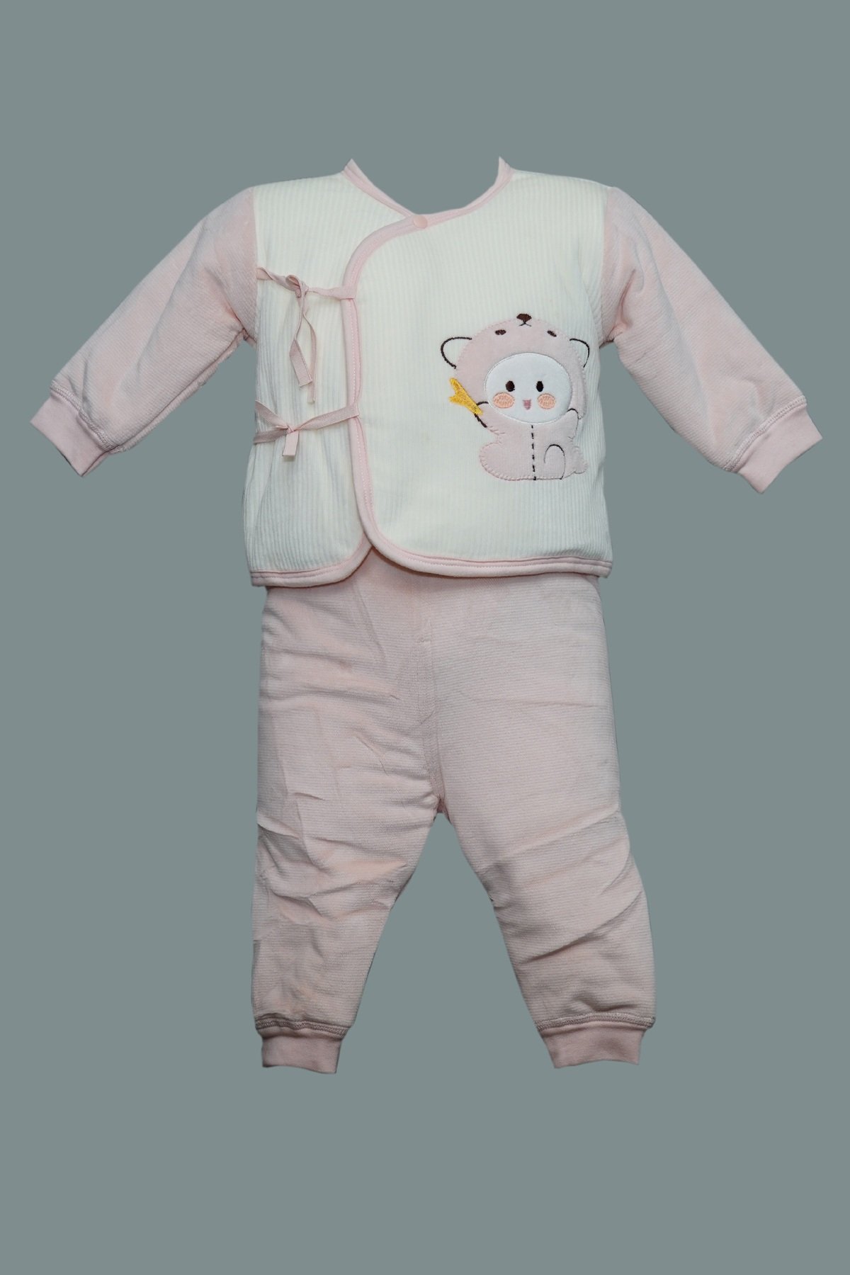 Pink Bear Tie‑Front Cozy Baby Set