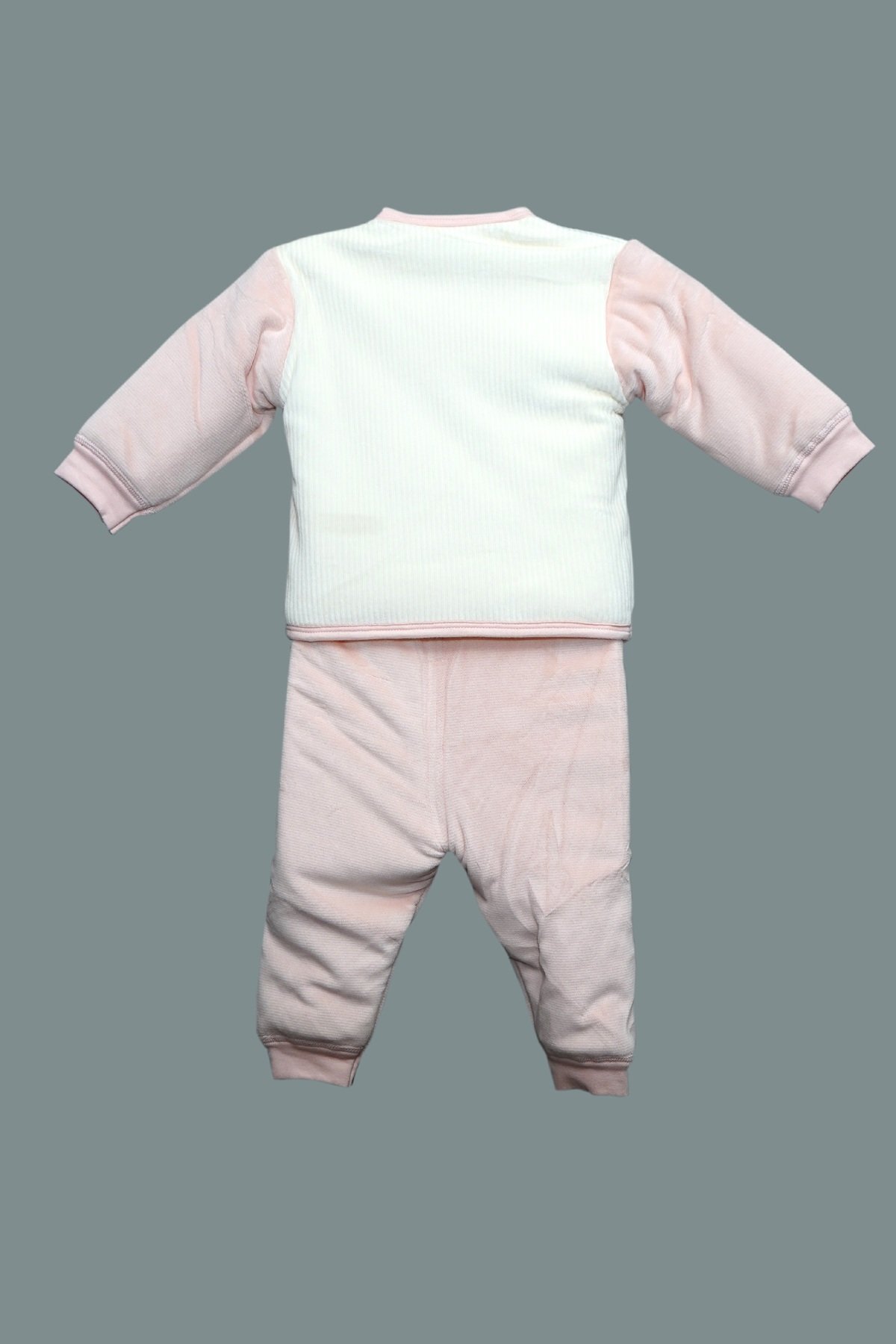 Keep bedtime gentle and adorable with the Pink Bear Tie‑Front Cozy Baby Set. This two‑piece outfit features a wrap‑style jacket with side tie closures and matching soft‑pink pants. The jacket has a ribbed cream front, contrast pink trim, and a plush embroidered bear applique. Pants include an elastic waistband and cuffed ankles for a snug, comfortable fit. Lightweight textured knit provides warmth without bulk—perfect for newborns and infants.