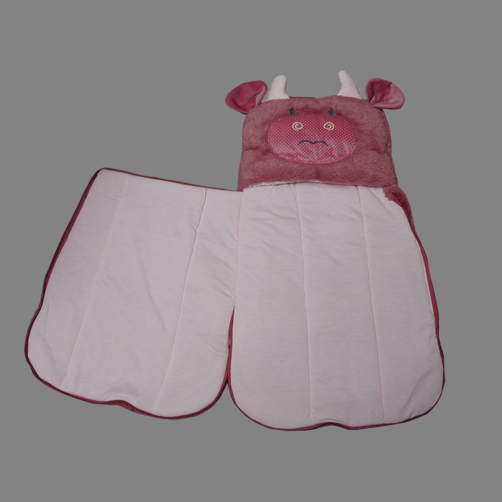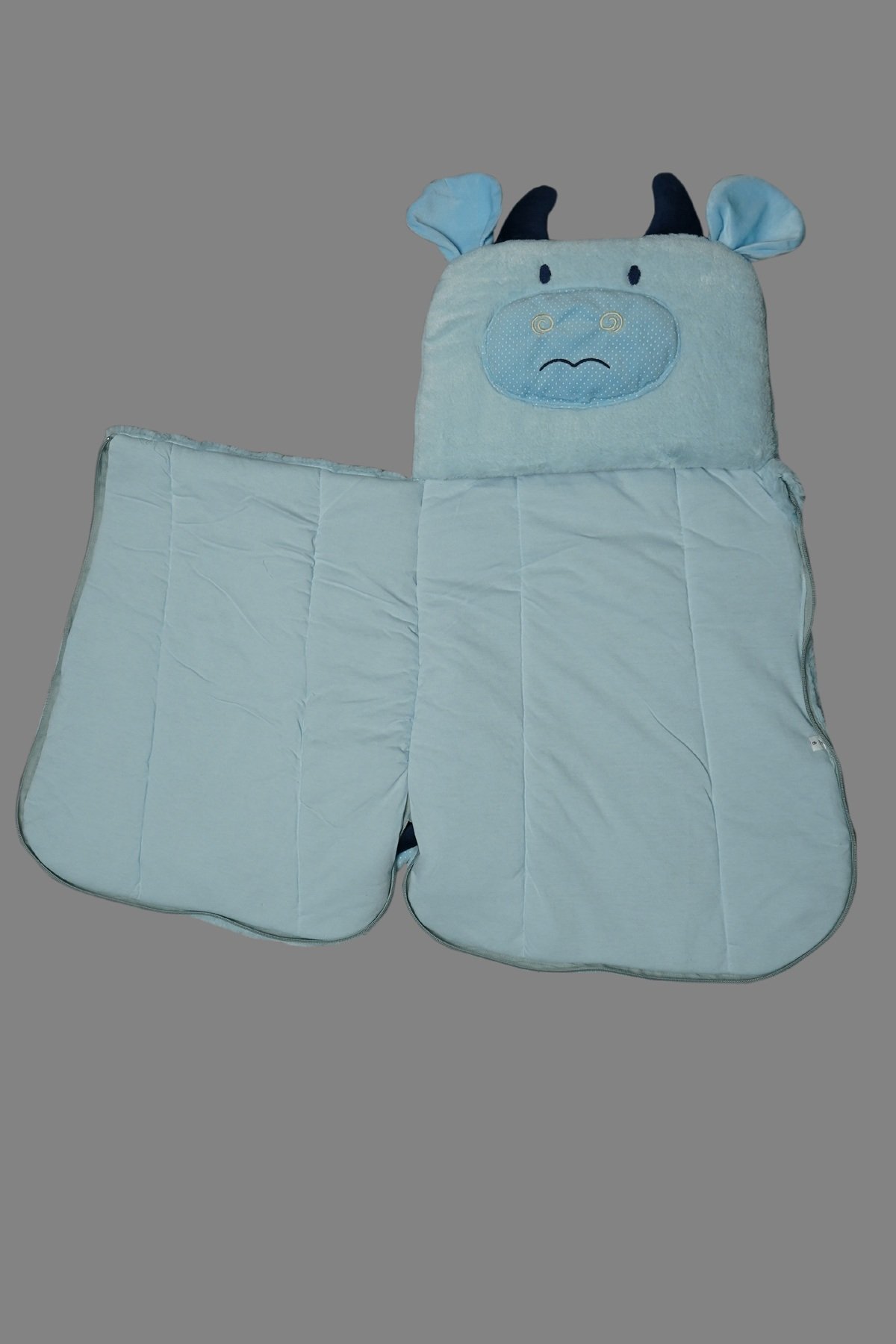 Padded hooded zip‑wrap in five colorways—cute, cozy, and travel‑ready. Features a plush lined hood with cute cow face, full‑length front zip plus side zips for quick access, lightweight insulation, and a soft quilted interior for newborn comfort.