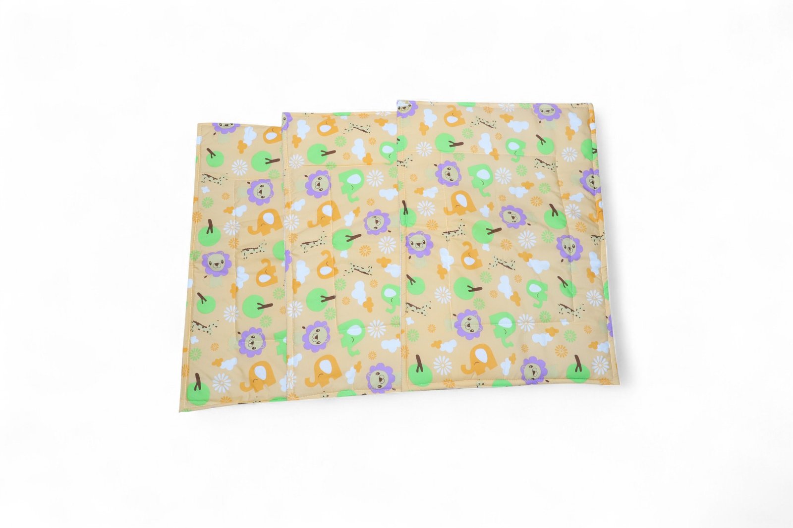 Practical 3‑piece diaper changing sheet set designed for home and travel. Includes one quilted changing mat, two padded foldable side panels, and a detachable waterproof topper for quick cleanups. Soft, printed outer with cushioned fill offers a comfortable, hygienic surface for diaper changes; lightweight, foldable design fits strollers, changing tables, and travel bags.