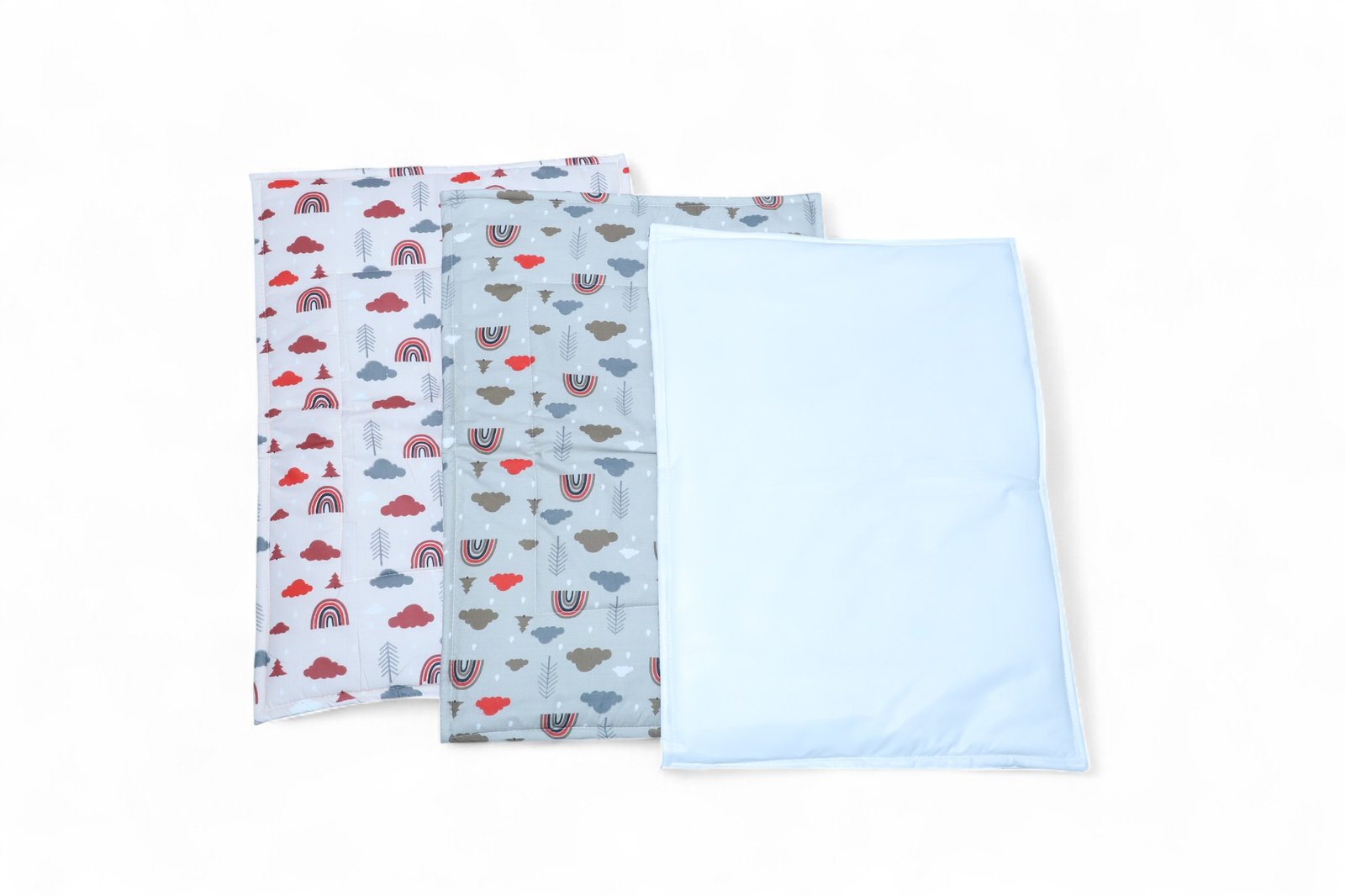 Quilted 3‑piece changing mat set with removable waterproof topper—comfortable, wipeable, and travel‑ready. lightweight, foldable design fits strollers, changing tables, and travel bags.