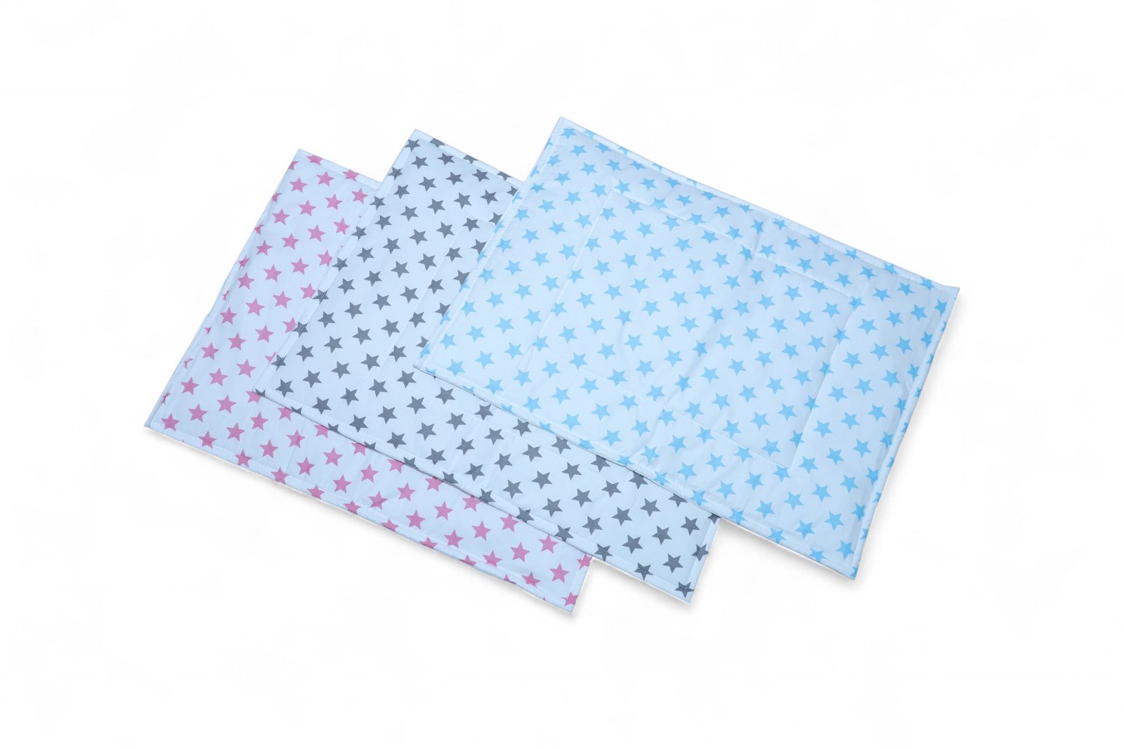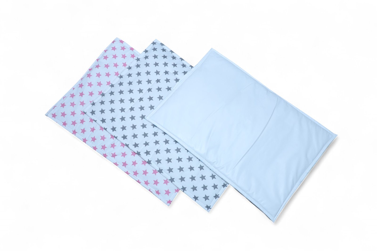 Practical 3‑piece diaper changing sheet set designed for home and travel. Includes one quilted changing mat, two padded foldable side panels, and a detachable waterproof topper for quick cleanups. Soft, printed outer with cushioned fill offers a comfortable, hygienic surface for diaper changes; lightweight, foldable design fits strollers, changing tables, and travel bags.
